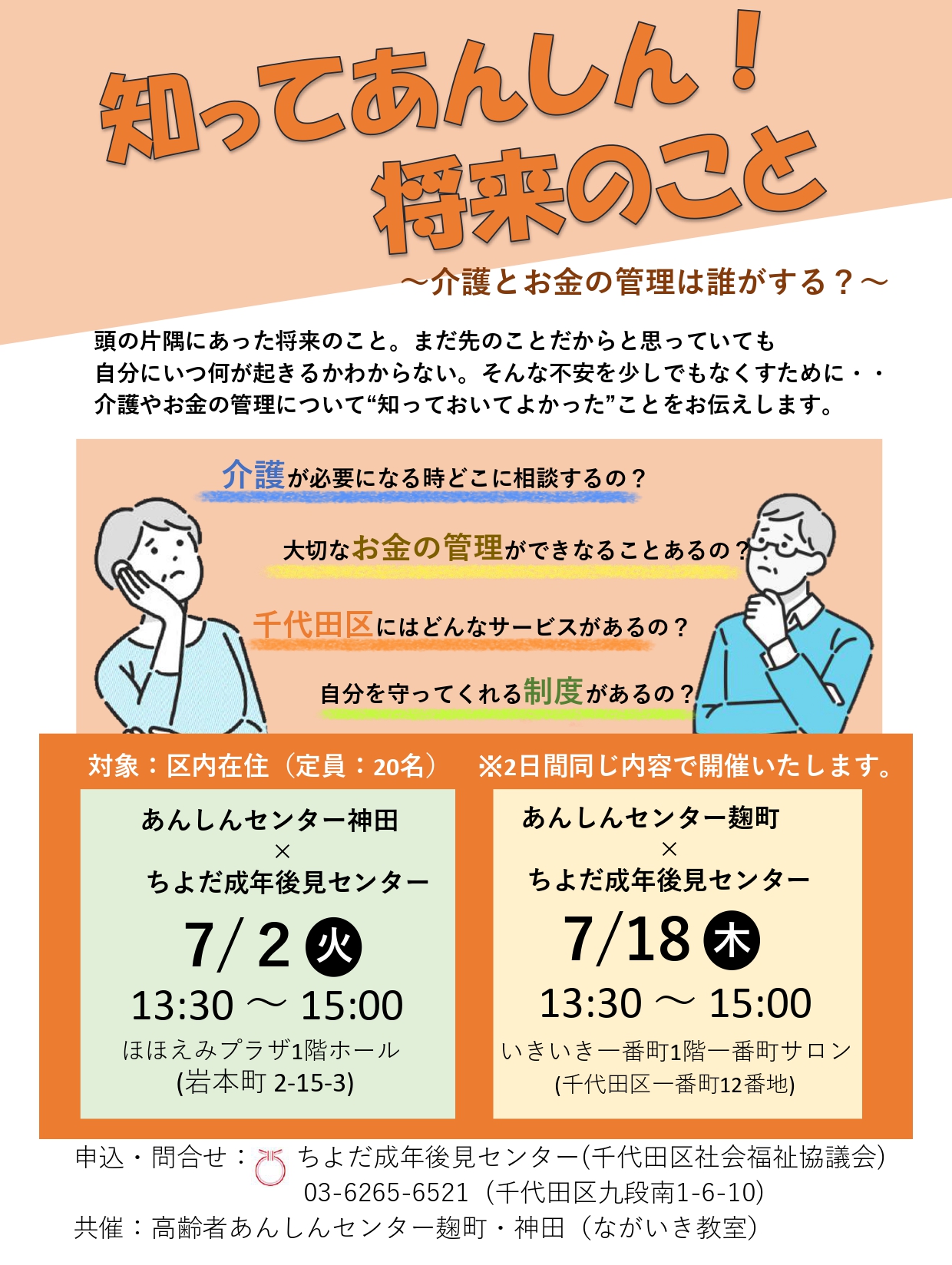 また、ちよだ成年後見センターで提供しているサービスや制度のご紹介も併せてご案内します。