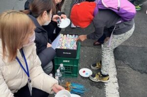 その他にも、道路に長い画用紙を敷き自分で選んだ好きな色の絵の具で