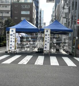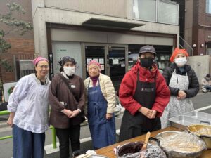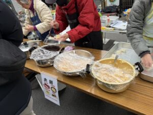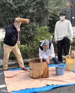 冷たい風が吹く中、12月13日(土)、東松下町々会の餅つき大会にお邪魔しました!