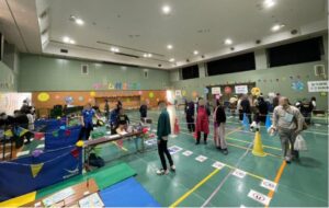 いずみこどもプラザは、和泉小学校やいずみこども園などの複合施設6階にある児童館です。ゲーム村は、そこで開催される一年に一度のお祭り!広いホールにたくさんの方が集まりました。