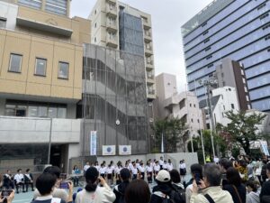 麹町小学校でのセレモニーは、サンシャインキッズの合唱がとても綺麗で可愛らしい歌声でした。