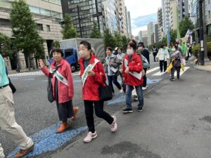 小学校を出発し、上智大学までの距離を各団体や地域の方々と、歩道の皆さんに声をかけながら歩きました。