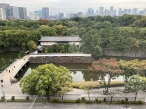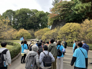 当日は、ボランティアガイドさんにご案内いただき、皇居東御苑の中を散策するだけでなく、向かいにあるパレスサイドビル8Fにある日建設計さんのご協力で、皇居の景観も眺めることができ、皇居の中からも外からも楽しむことができました。パレスサイドビル設計時のエピソードも聞くことができ、設計した方の細部へのこだわりや地域の皆さんのビルへの愛着を感じました。散策後は、ベストリハの理学療法士さんにリードしていただき、参加者の皆さんとストレッチ体操をしました。足の筋肉が伸びて、とても気持ち良かったです。