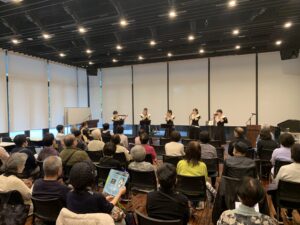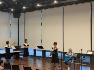 コンサートの終盤には、奏者の皆さんのハーモニカと、福祉部長の岡村さんのギターのコラボによるサプライズ演奏が実現。会場からは大きな拍手が起きていました。