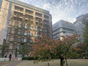 紅葉の美しい都会の公園といえば、ロンドンのセント・ジェームズ・パーク、ニューヨークのセントラルパークなどありますが、ここ神田・淡路公園も負けていません。ビルの谷間で、ゆったりとした時間が流れる、まさに都会のオアシスです。