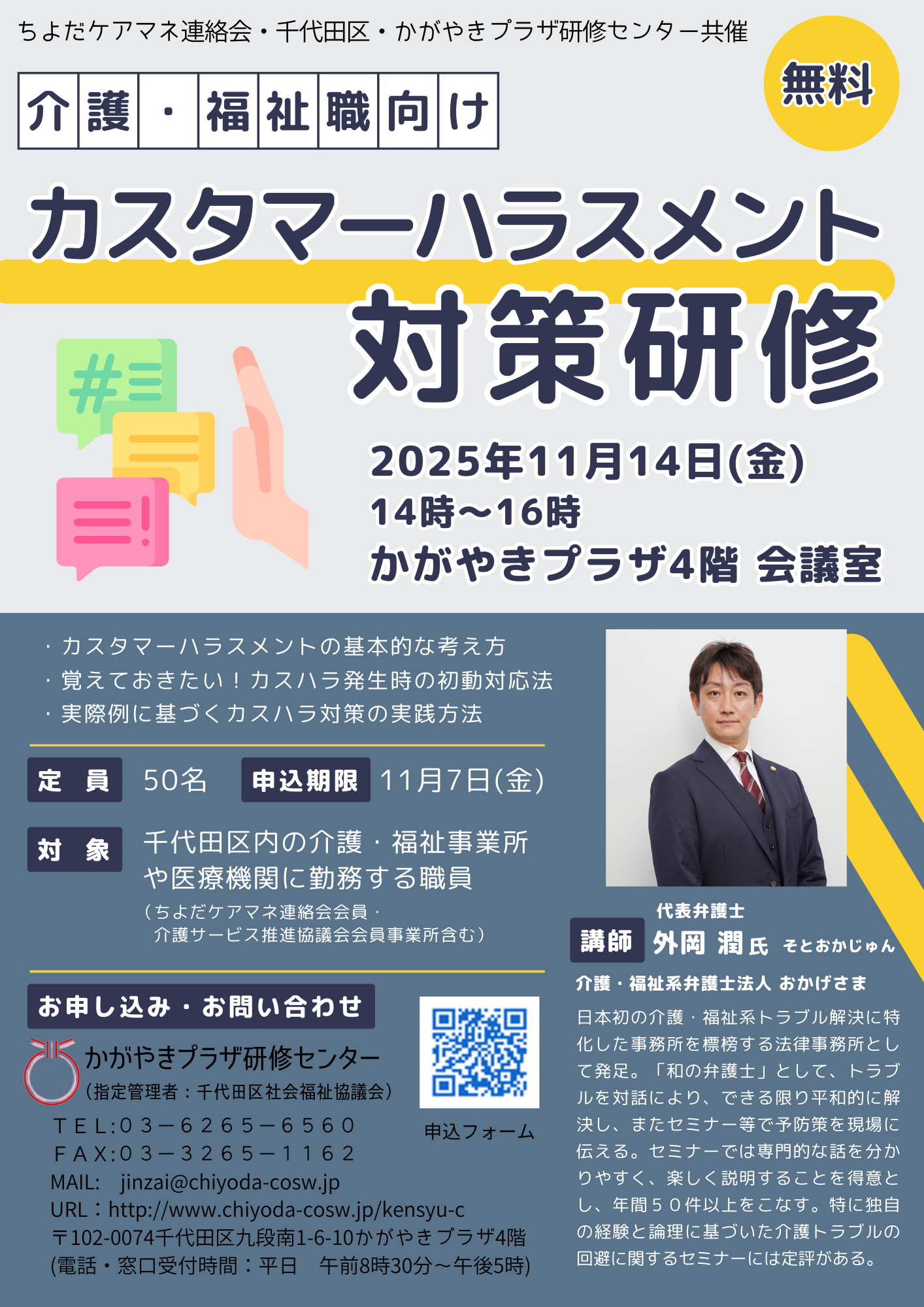 【専門職向け】11/14(金)14時~16時「カスタマーハラスメント対策研修」