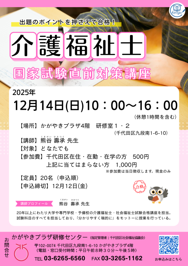 12/14(日)介護福祉士国家試験 直前対策講座