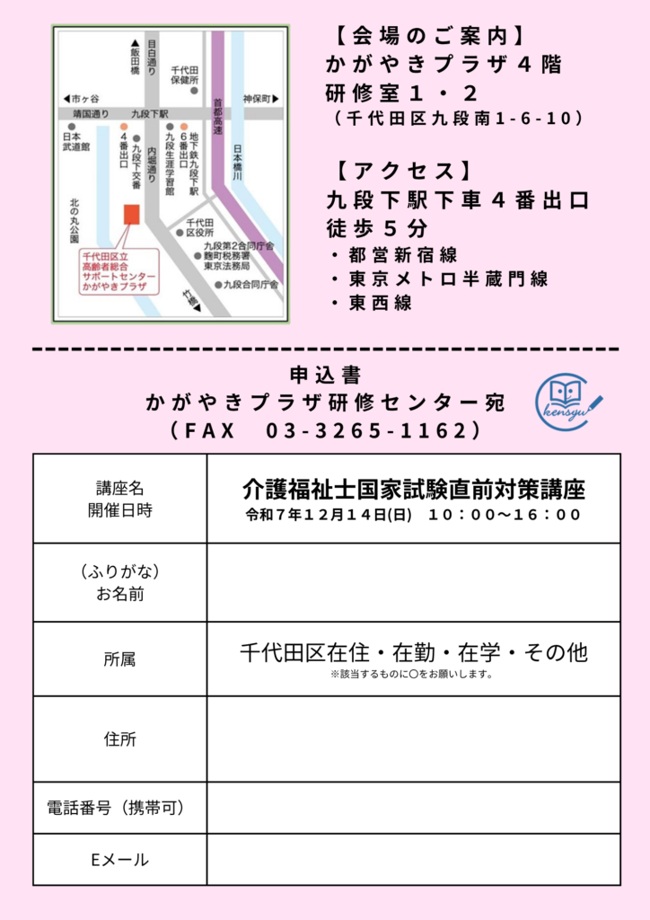 ホーム > お知らせ > 12/14(日)介護福祉士国家試験 直前対策講座