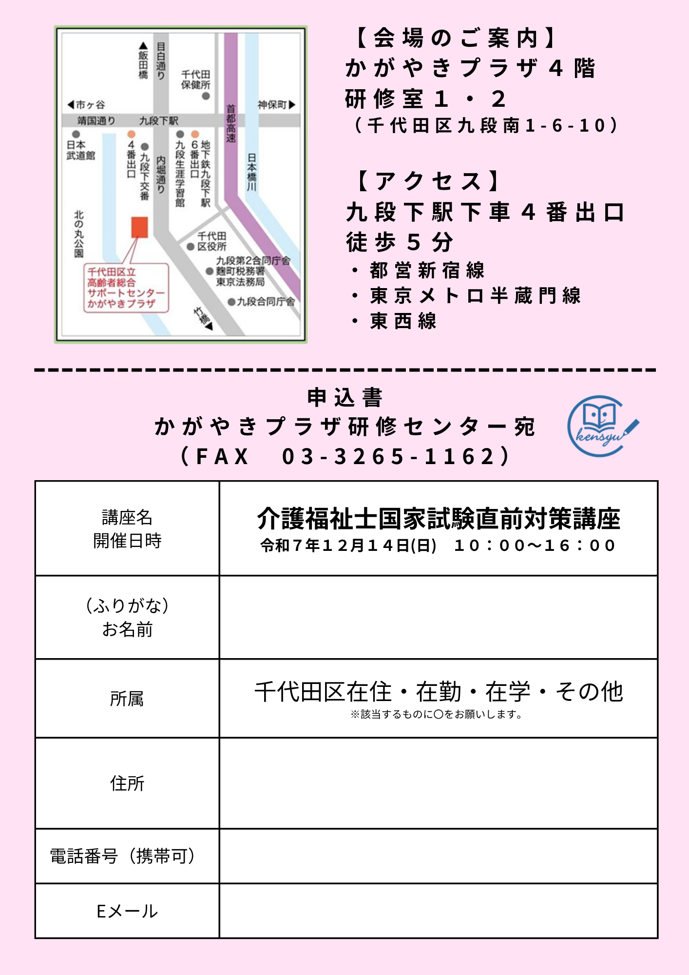 ◆会 場  かがやきプラザ4階 研修室1・2(九段南1-6-10)