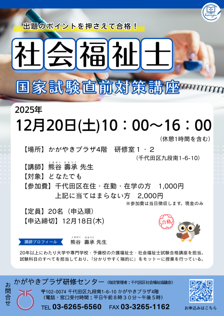 第38回社会福祉士国家試験に向けた直前対策講座を開催します。試験前の直前対策に是非ご参加ください!