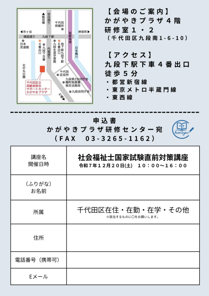 ◆会 場 かがやきプラザ4階 研修室1・2(九段南1-6-10)