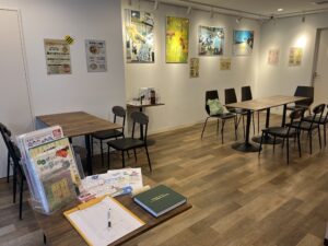 区立障害者福祉センターえみふるが運営するコミュニティカフェ「ちよだんごカフェ」を借りて、みんなのサロンをスタートしました。