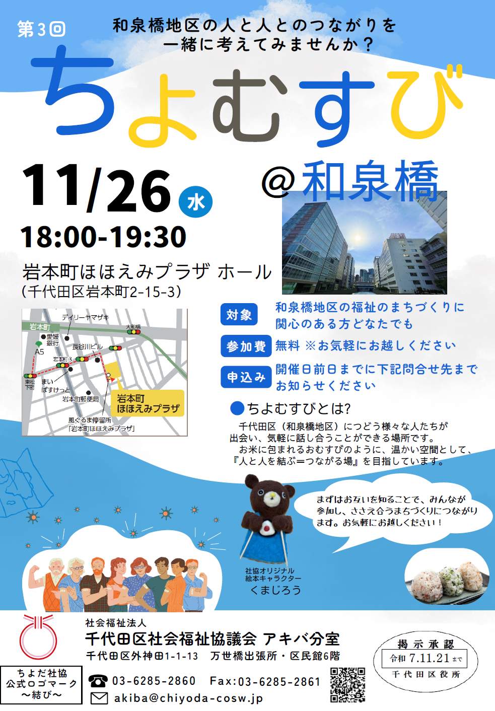 11/26(水)ちよむすび@和泉橋~人と人とのつながりをいっしょに考えてみませんか?