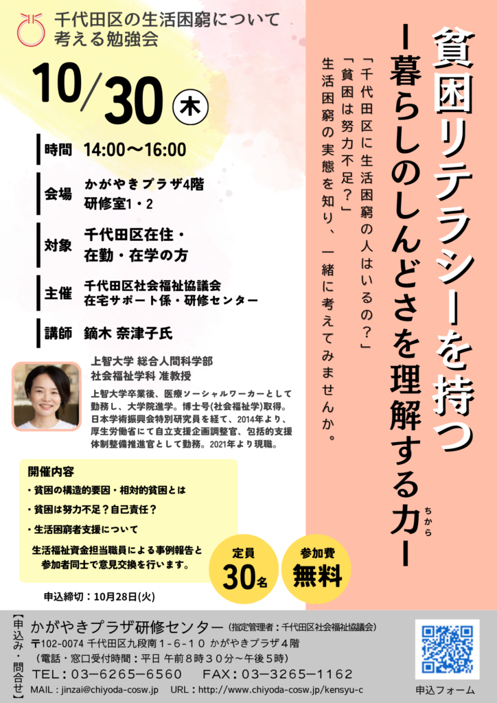 10月30日(木)「貧困リテラシーを持つ」~暮らしのしんどさを理解する力~