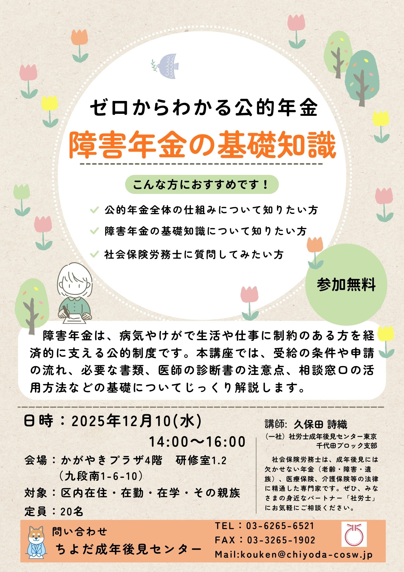 12/10(水)ゼロからわかる公的年金「障害年金基礎知識」講座