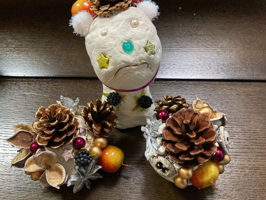 ★ポマンダーとは…紙粘土を土台にし、木の実やリボンなどのクリスマス素材を自由に飾り付けたものです。※下記写真参照。