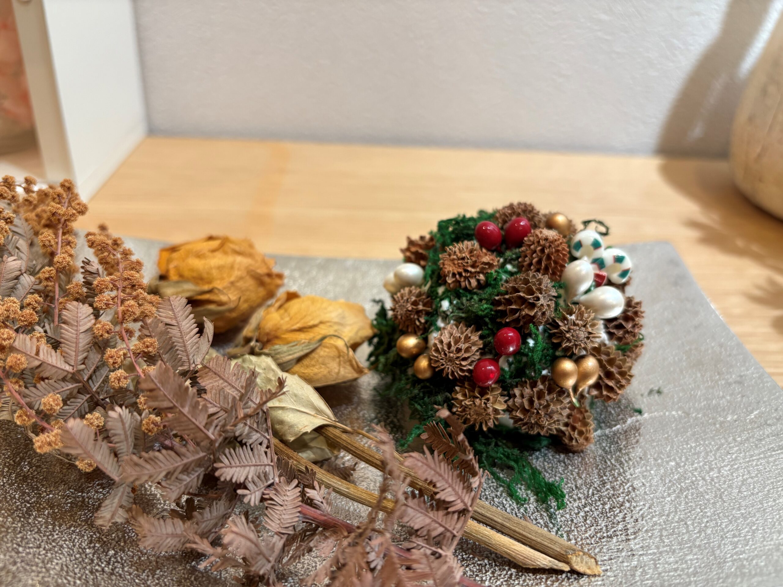 ★ポマンダーとは…紙粘土を土台にし、木の実やリボンなどのクリスマス素材を自由に飾り付けたものです。※下記写真参照。