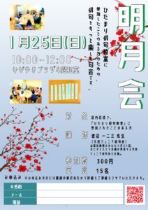 【キャンセル待ちのご案内】1月25日(日)明月会(ひだまり俳句教室参加者のための俳句会)