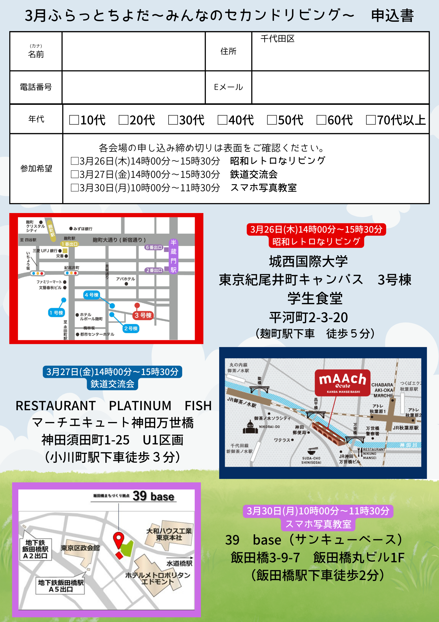 3月の【ふらっとちよだ~みんなのセカンドリビング~】
