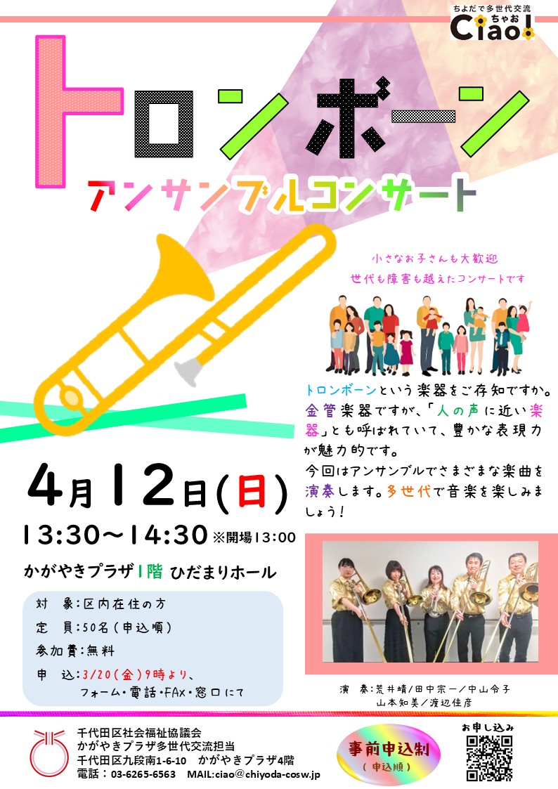 【3/20(金・祝)9時より受付開始】4/12(日)トロンボーンアンサンブルコンサート