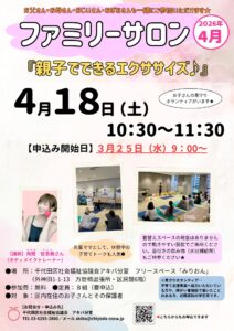 【3月25日(水)9時より予約開始】4月ファミリーサロン『親子でできるエクササイズ♪』のご案内